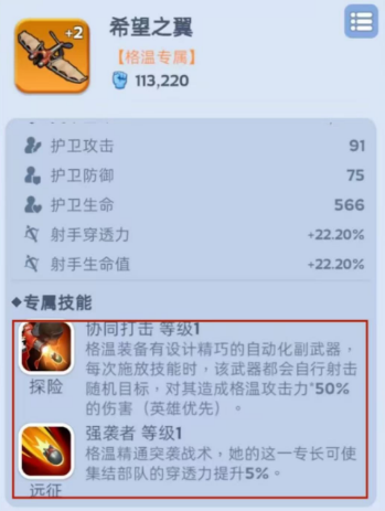每个橙色英雄都有自带的本命武器,这武器自带两个专属技能,一个是探险技能,另一个是远征技能。探险技能主要用于探险和竞技场,远征技能则用于打架和守城。武器最高能升到+10,但技能等级上限只有5级。