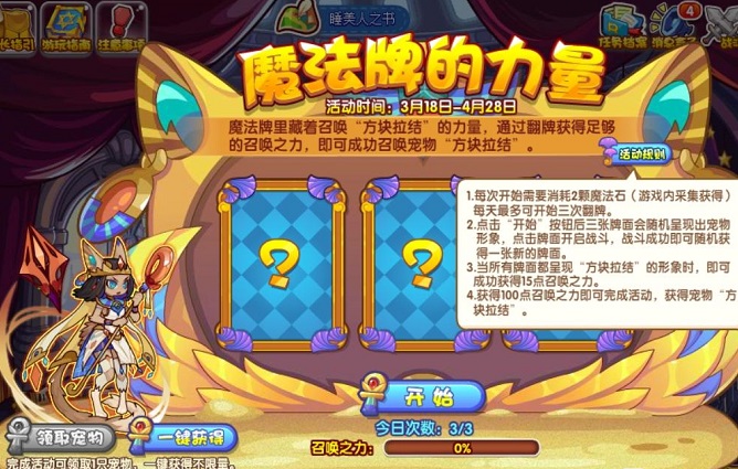 这活动吧,感觉就是看脸,运气好的话很快就能攒够召唤之力,运气差的可能得翻好几次。不过玩起来还是挺放松的,不用太费脑子。新宠物方块拉结也挺可爱的,值得试试。